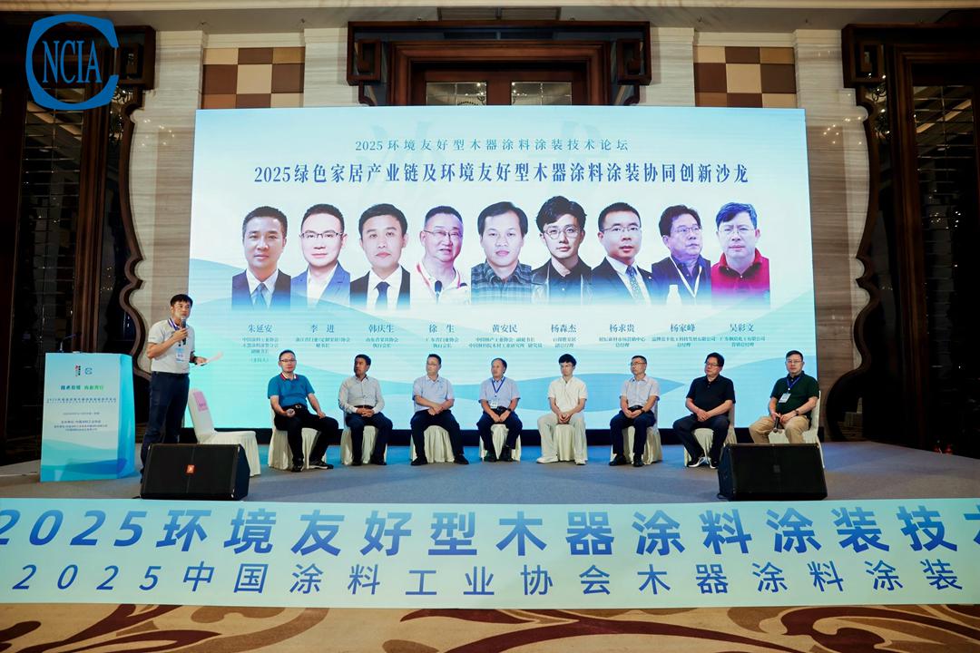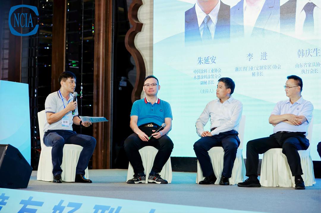 中國林產工業協會副秘書長、中國林科院木材工業研究所研究員黃安民,廣東省門業協會 執行會長徐生,山東省家具協會執行會長韓慶生,浙江省門業(定制家居)協會秘書長李進,百得勝家居副總經理楊森杰,展辰新材市場營銷中心總經理楊求貴,淄博嘉豐化工科技發展有限公司總經理楊家峰,廣東楓宸化工有限公司營銷總經理吳彩文圍繞“協同創新 向綠而行”,共同直面當前行業痛點,探討涂料原材料、涂料成品和家具企業整個產業鏈如何協同發展,破除行業內卷,通過創新研發,提升自身的競爭力,使行業朝著更加綠色、低碳、高效的方向發展,為消費者提供更加環保、舒適的家居產品,共同推動綠色家居產業鏈的繁榮發展。