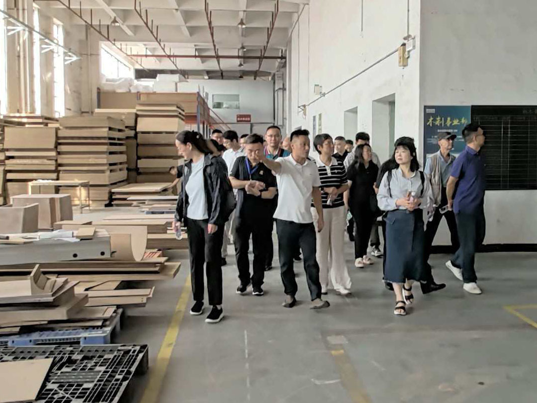 9月18日,與會(huì)代表實(shí)地考察迪歐家具集團(tuán)木制家具涂裝產(chǎn)線,迪歐分享了水性涂料涂裝在實(shí)木和板材家具中的應(yīng)用,獲益匪淺。