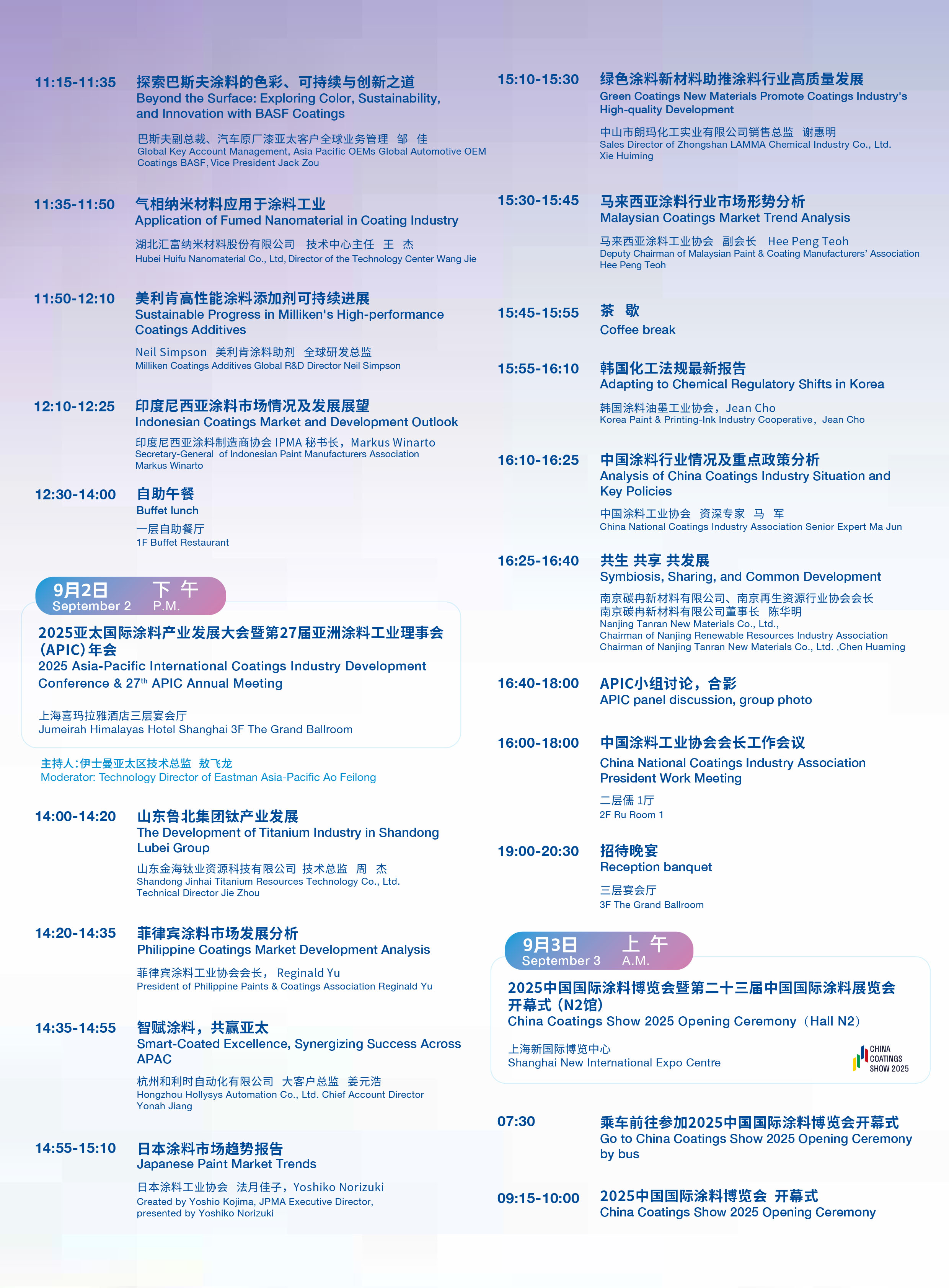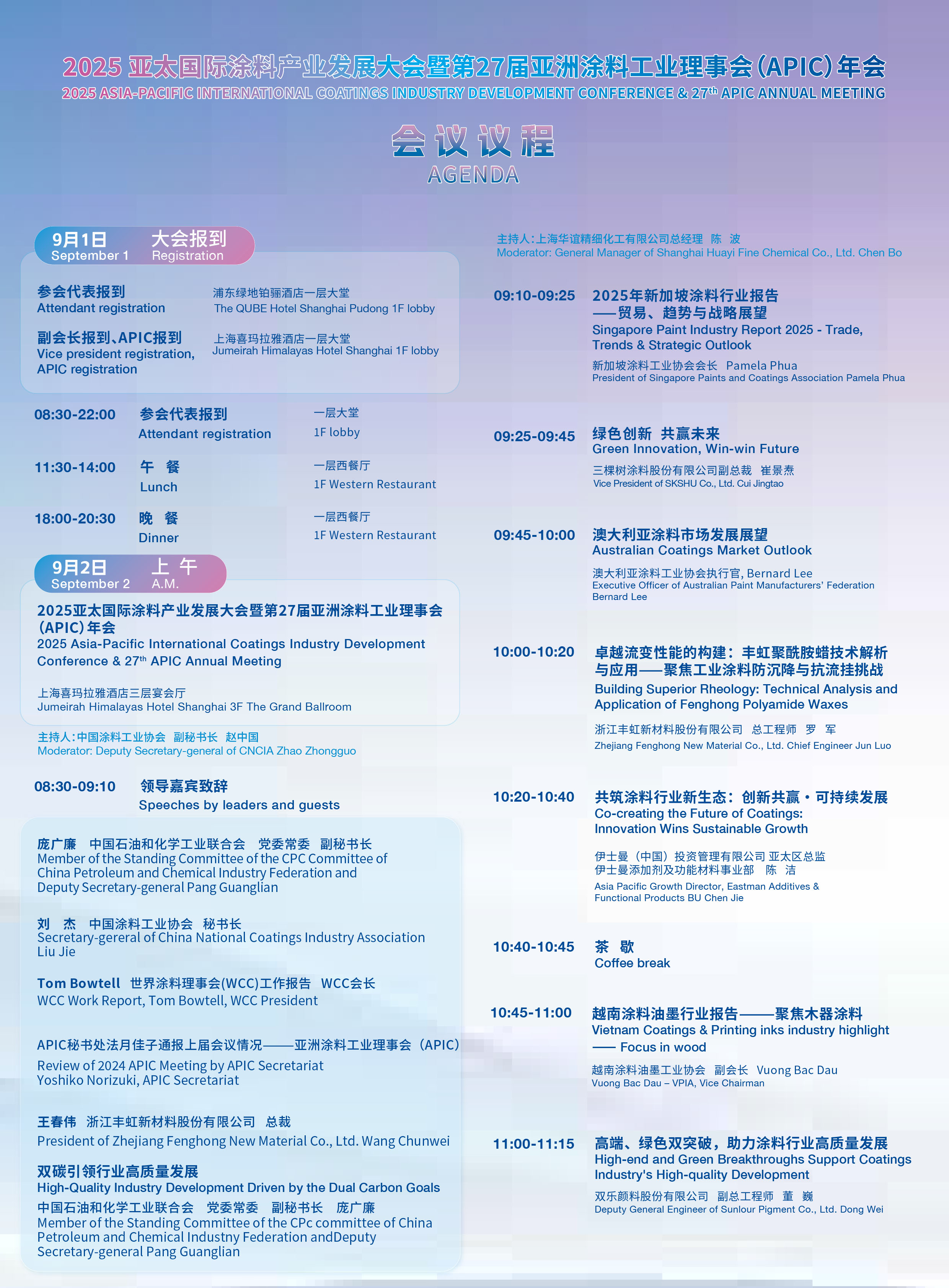 9月上海,爍玉流金,萬(wàn)物競(jìng)秀。在2025年上海合作組織天津峰會(huì)圓滿(mǎn)落幕之際,上海迎來(lái)了中國(guó)、亞太乃至全球涂料行業(yè)最高規(guī)格盛會(huì)。9月1-2日,2025亞太國(guó)際涂料產(chǎn)業(yè)發(fā)展大會(huì)暨第27屆亞洲涂料工業(yè)理事會(huì)(APIC)年會(huì)在上海勝利召開(kāi)。這是亞太國(guó)際涂料產(chǎn)業(yè)發(fā)展大會(huì)和亞洲涂料工業(yè)理事會(huì)年會(huì)首次聯(lián)袂在中國(guó)召開(kāi),涂料行業(yè)“頂級(jí)國(guó)際會(huì)議+國(guó)際涂料組織”首次聯(lián)動(dòng),亞太涂料區(qū)域協(xié)同創(chuàng)新加速形成。來(lái)自中國(guó)石化聯(lián)、世界涂料理事會(huì)以及中國(guó)、英國(guó)、德國(guó)、澳大利亞、巴西、日本、韓國(guó)、印度尼西亞、新加坡、馬來(lái)西亞、菲律賓、越南等12個(gè)國(guó)家和地區(qū)的涂料組織代表、行業(yè)領(lǐng)袖、企業(yè)精英、專(zhuān)家學(xué)者共300余人參會(huì)。
